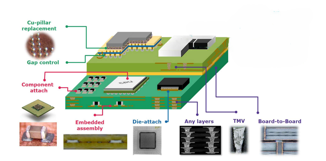 - 用于高层数电路板的 Z 轴互连 - 用于细间距设计的微孔填充 - 卓越的良率和更低的工艺复杂性