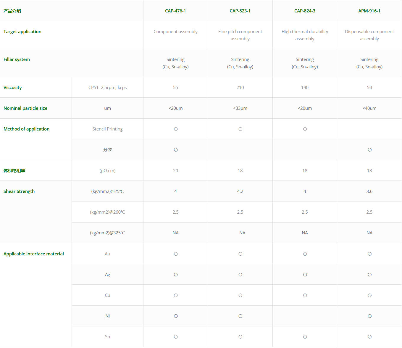 - CAP-476-1:用于组件组装的高性能浆料。